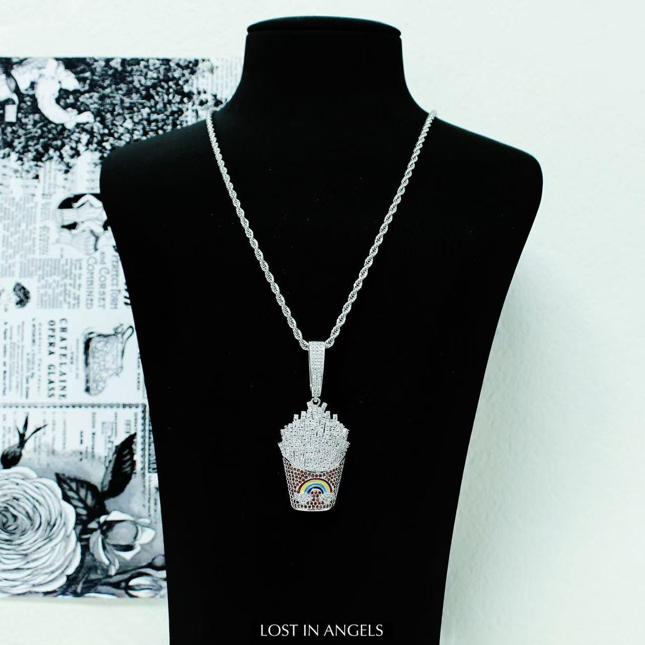 1 French Fries Diamond Pendant Necklace IN gift-ready packaging