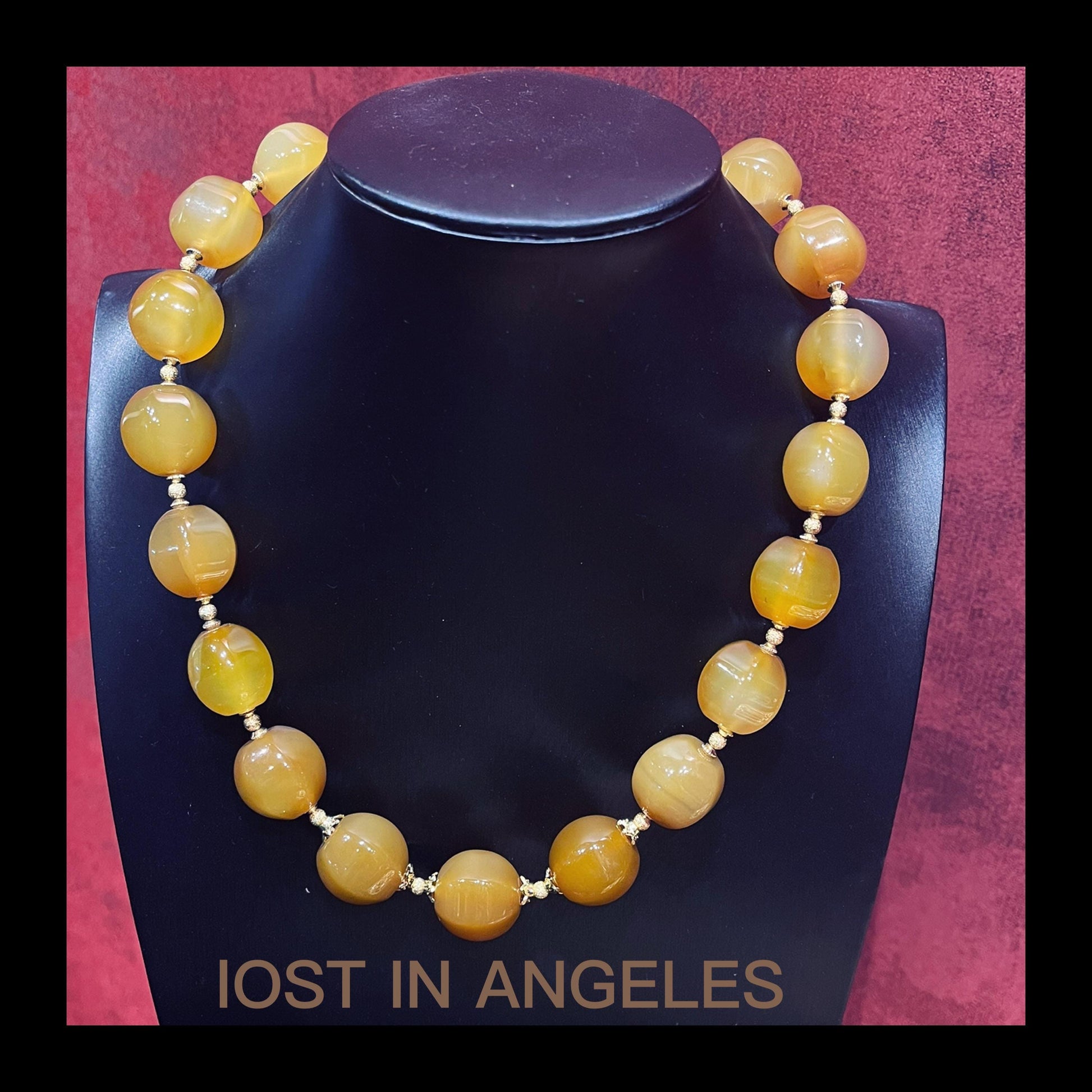 Introducing the "LOST IN ANGELES" unique design necklace – an exquisite, handcrafted masterpiece featuring high-saturation Brazilian Old Pit Agate. Known for its rich, vibrant hues and stunning natural patterns, this necklace is more than just an accessory – it’s a true work of art, made to captivate and impress.
